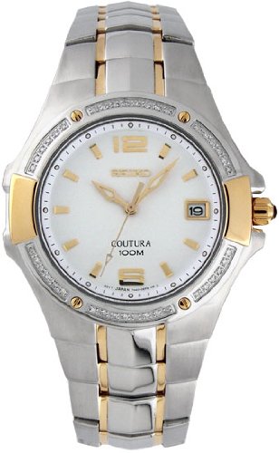 Seiko Coutura where innovation meets refinement. The bezel is adorned by 40 brilliant diamonds. The brushed and polished two tone stainless steel bracelet and case are like no other. White dial. The sapphire crystal is virtually scratch proof and the cabochon crown adds that finishing touch. 100 meters water resistant. CHECK PRICE NOW! GET DISCOUNT PRICE ON SALEAmazon.com/Seiko Men's SGED28 Coutura Diamond Watch Save on Seiko Men's SGED28 Coutura Diamond Watch